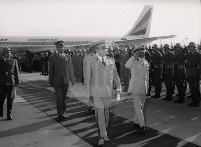 Poseta cara Hajla Selasija: sve?ani do?ek cara Haila Selasija i princeze Tenenjevork na aerodromu "Brnik"